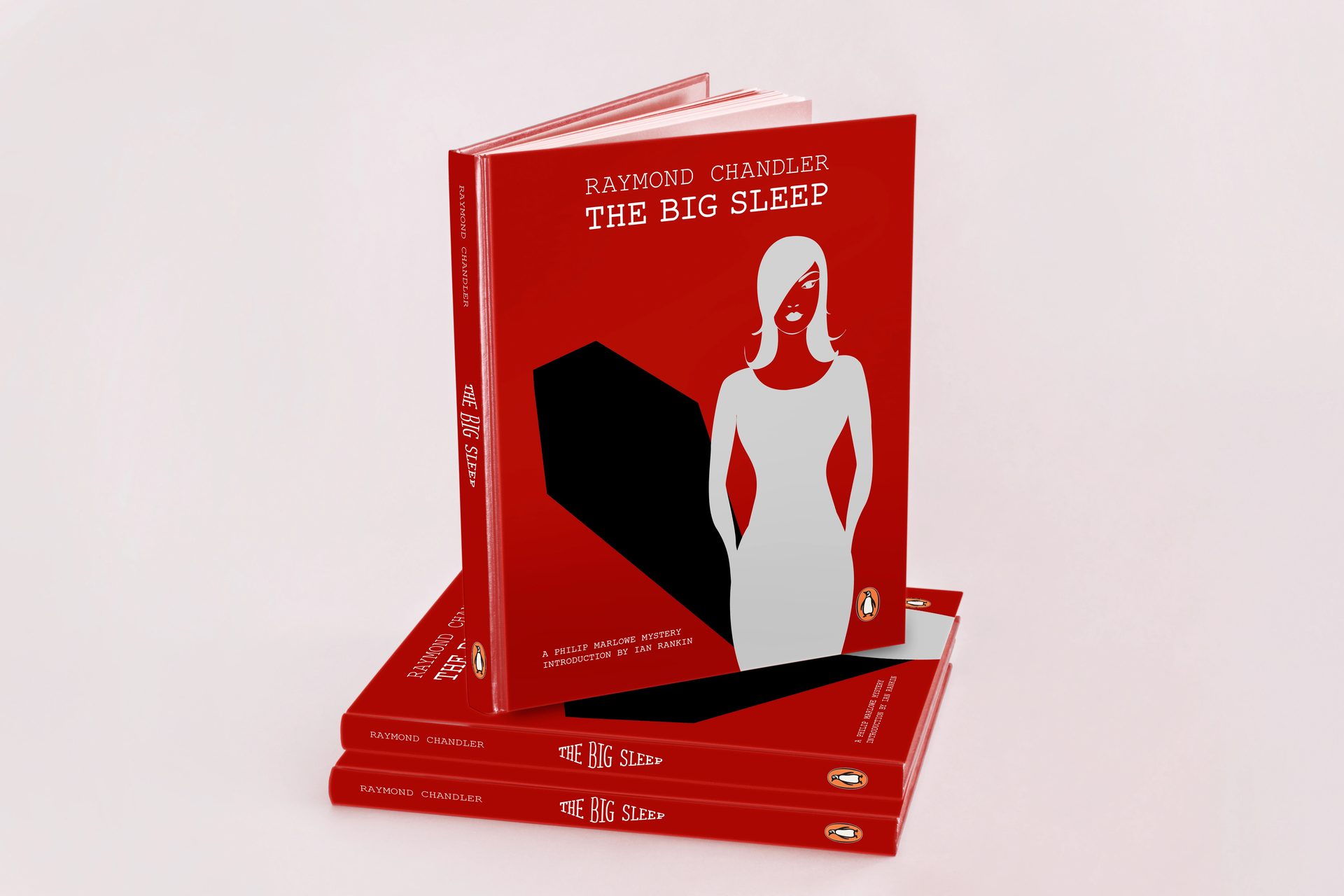 This hardboiled crime novel introduces detective Philip Marlowe in a complex story with blackmail, adultery and murders. The cover, featuring a minimal illustration of one of the key characters, foreshadows the prime mystery of the plot. The simple colour palette is symbolic of the bloodshed in the book and typeface adds to the character of the era and the story. The typeset of the name on the spine alludes to the greater mystery of ‘the big sleep’.